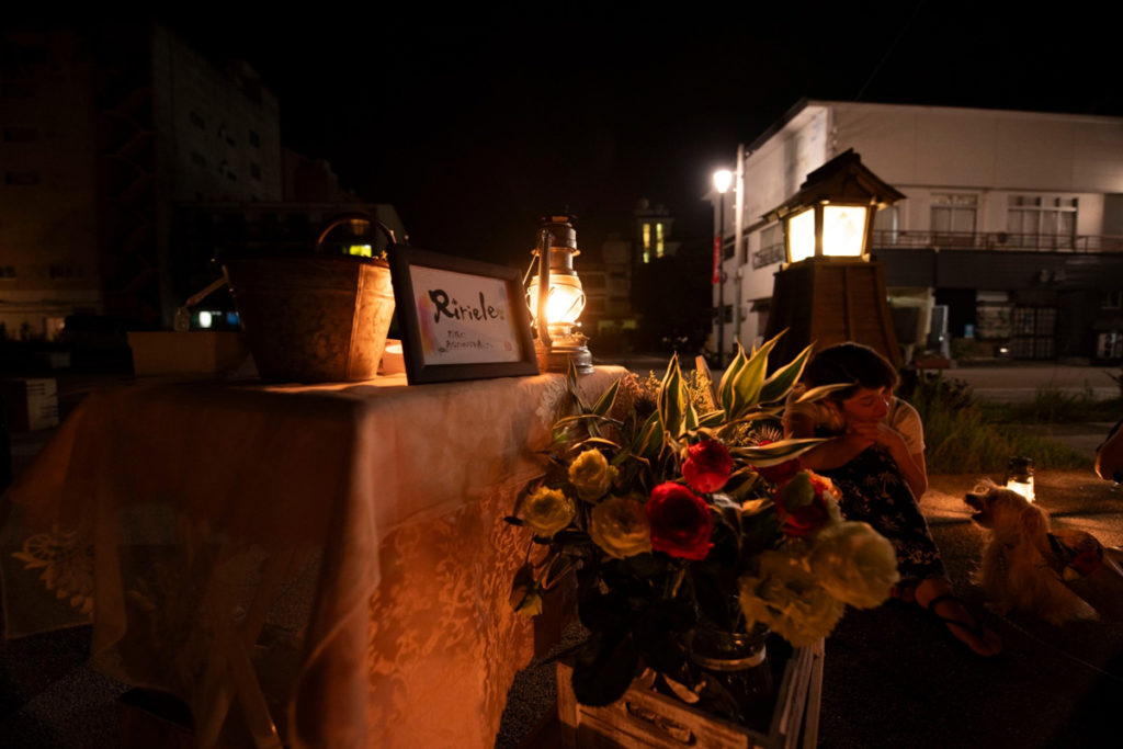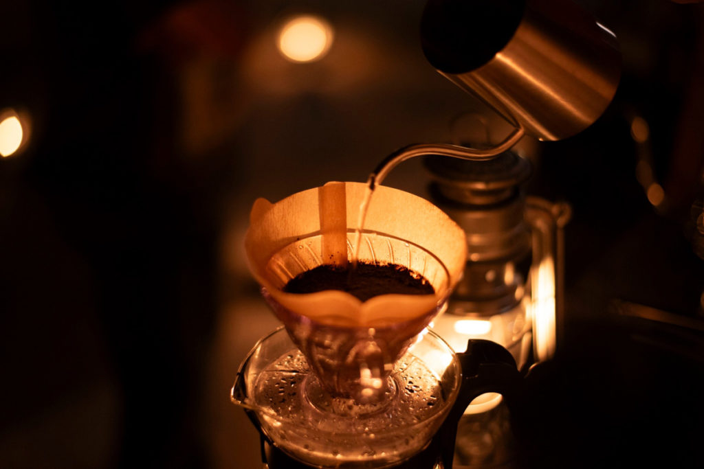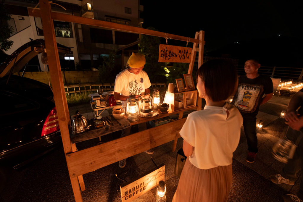 門前広場には、なるぴい珈琲さんとRirieleさんというお花屋さんが出店していました。ビールも好きですが、コーヒーも大好きです!1杯お願いします。なるぴいさんは、目の前でコーヒーをドリップしながら、お話を聞かせてくれました。日中は別のご職業のなるぴいさんは、旅人がいる世界は平和だという考えのもと、旅人がほっと立ち寄れる場所を作りたいという思いで大好きなコーヒーの販売を始めたんだそうです。なるぴいさんが淹れる珈琲は、ウガンダを中心としたこだわりの豆を目の前で軽快なトークとともに淹れてくれます。ランタンの灯とおいしいコーヒー、素敵な出会い。至福の時間です。