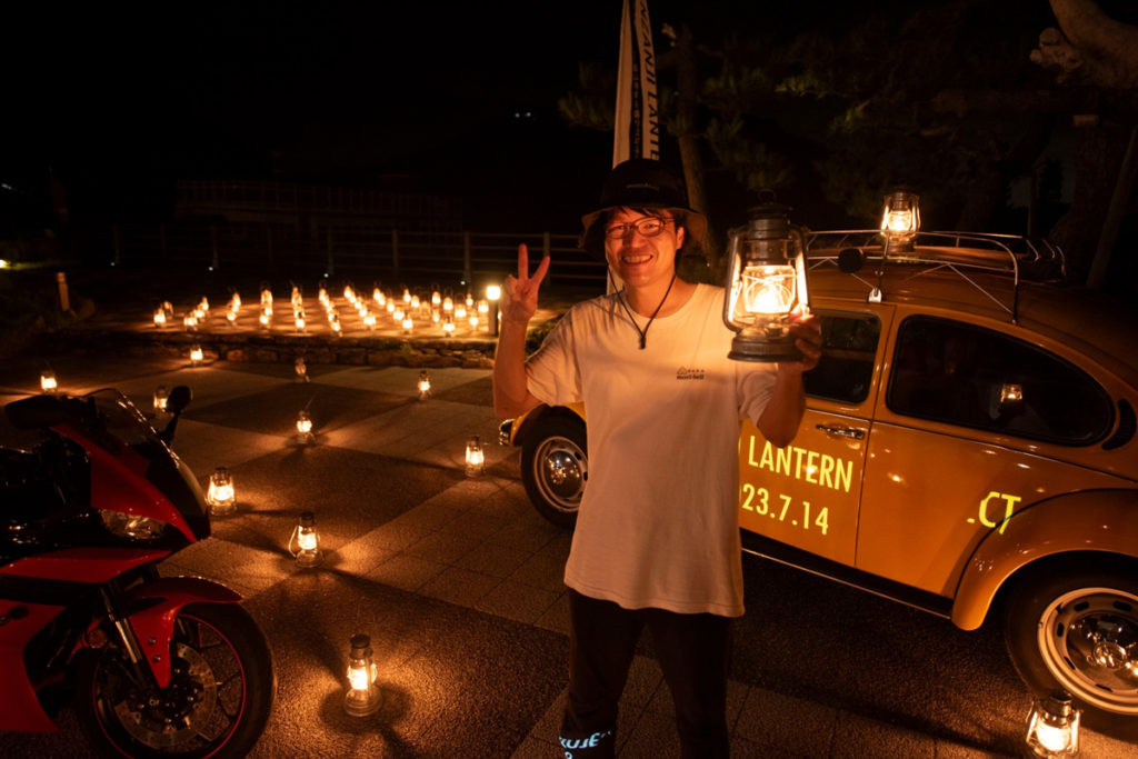 ランタンプロジェクトを主催されている、ハット館山こと太田さんは数年前に舘山寺の灯篭流しの光に感動し、旅行者や地元の方が、いつ来ても楽しんでいただけるように毎週できるイベントを開催したいと考えるようになり、2年前に”舘山寺ランタンプロジェクト”をスタートしたんだそうです。当初は、誰も来ない日が多かったそうですが今では少しずつ参加者が増え、6台からスタートしたランタンの数は150台を超えるほどに!(2023年7月現在)ランタンプロジェクトに来ると太田さんご自身も楽しんでいるのが印象的です。これが毎週続ける秘訣なんでしょうね!