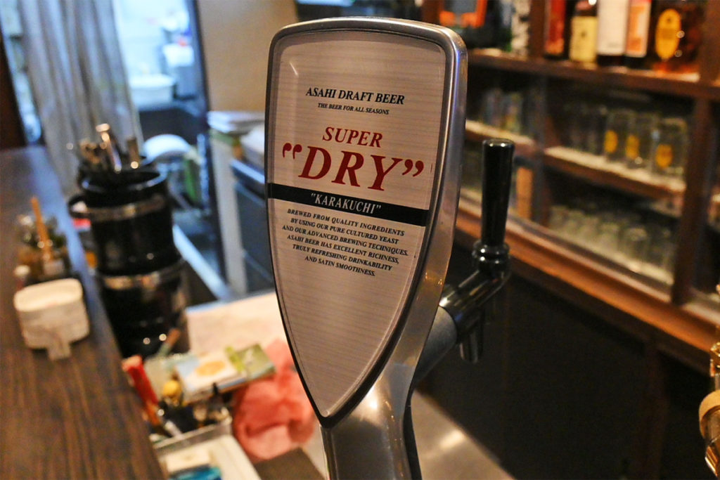 はしご酒の最後にWonderful Tonightさんに行きます。門前通りに入って数十メートル歩いた先、高橋屋さんと権太さんの並びにお店はあります。清潔感のある洒落た雰囲気の店内にはお客さんがいっぱいです。あら、先ほどにぐるまさんでご一緒したヒゲさんが!お久しぶりです!明るくて素敵なママに案内していただき、席に座ると目の前にビールサーバーが!こちらでも生ビールをお願いします。かなは甘めのお酒をお任せでお願いしました。